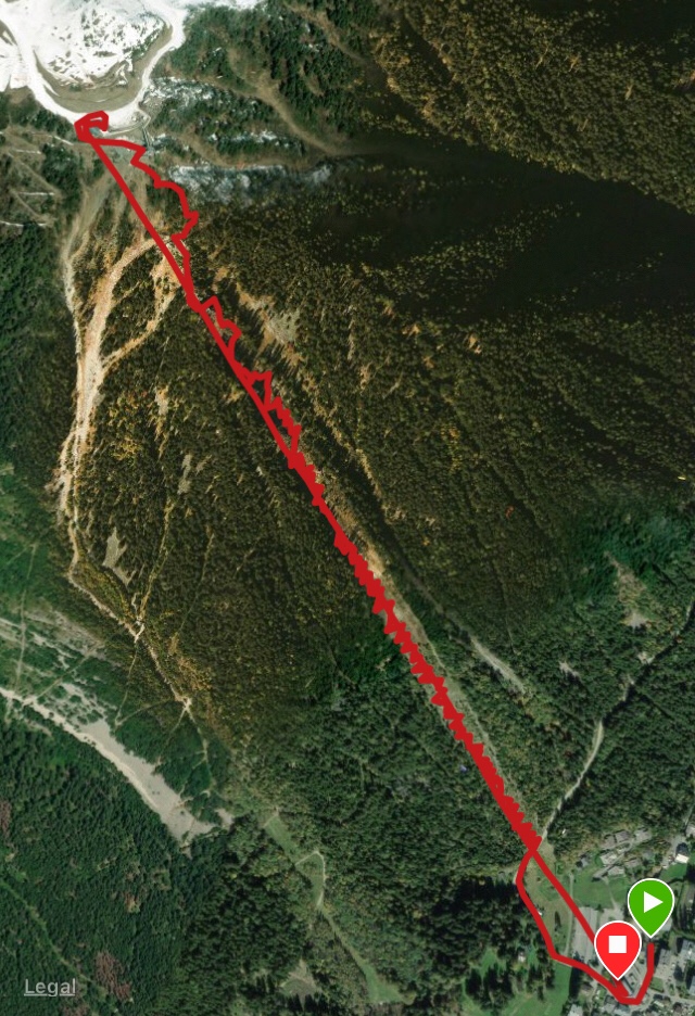 On a very different side of running, we’d also heard of Chamonix’s famous (notorious!) VK, vertical kilometre, and had discovered it was actually right outside our door zig-zagging up the mountain directly below the Brévent telecabine. After carefully consulting the lift times, we decided it might just be possible to watch the finale of an incredible TdF stage, and then immediately tackle the VK in time to get the lift down from the summit at Planpraz which shut at 6pm.