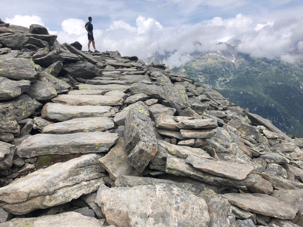 Onward and upwards from this glacier to Le Signal at 2,204m which was a stunning rocky environment with fantastic views both up to the spikey Aiguilles above and across the Chamonix Valley below.